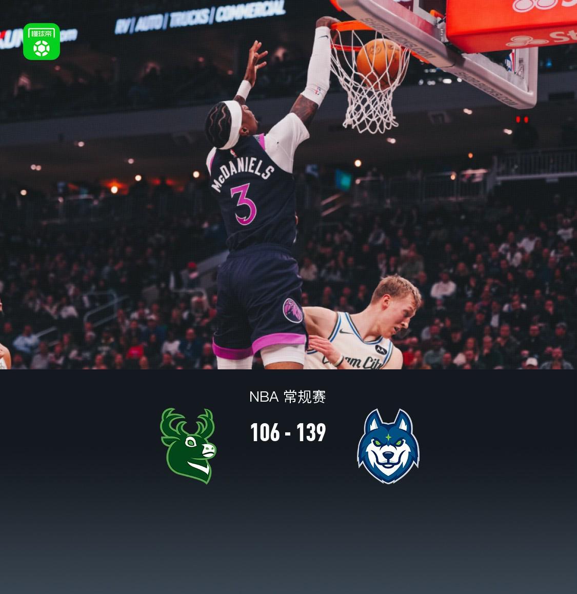 森林狼139-106轻取雄鹿,兰德尔29+8+6,海兰德23分